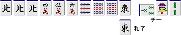 ・北・暗刻、三索をチー、場風・東の頭待ちのケース