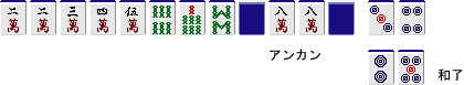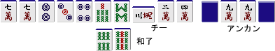 三萬を副露(チー)、九萬を暗槓(アンカン)したケース
