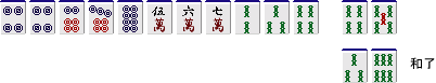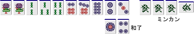 ②自摸和の場合、自摸2符+場風・南4符の計26符、切り上げ30符の役1翻和り ⇒ 荘家(親)360点、散家(子)240点 自摸2符が加符されるが、他に符がないため30符の役1翻での点数計算となります。