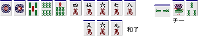 切り上げ40符、清一色役3翻(自摸の為平和役は付かない)